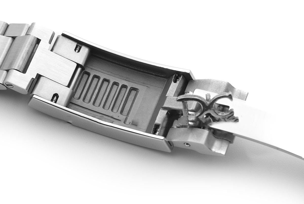 Bracelet: Stainless steel bracelet with perfect solid end links, clasp and divers extension and smooth screws